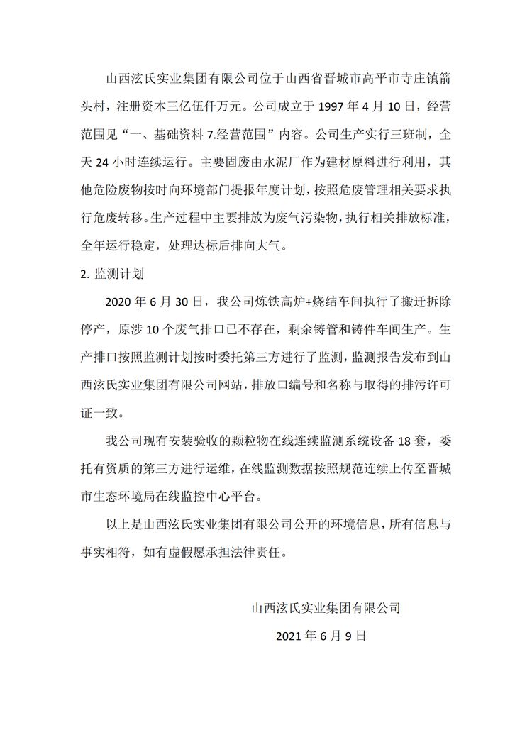 山西泫氏實(shí)業(yè)集團(tuán)有限公司 環(huán)保信息公示資料